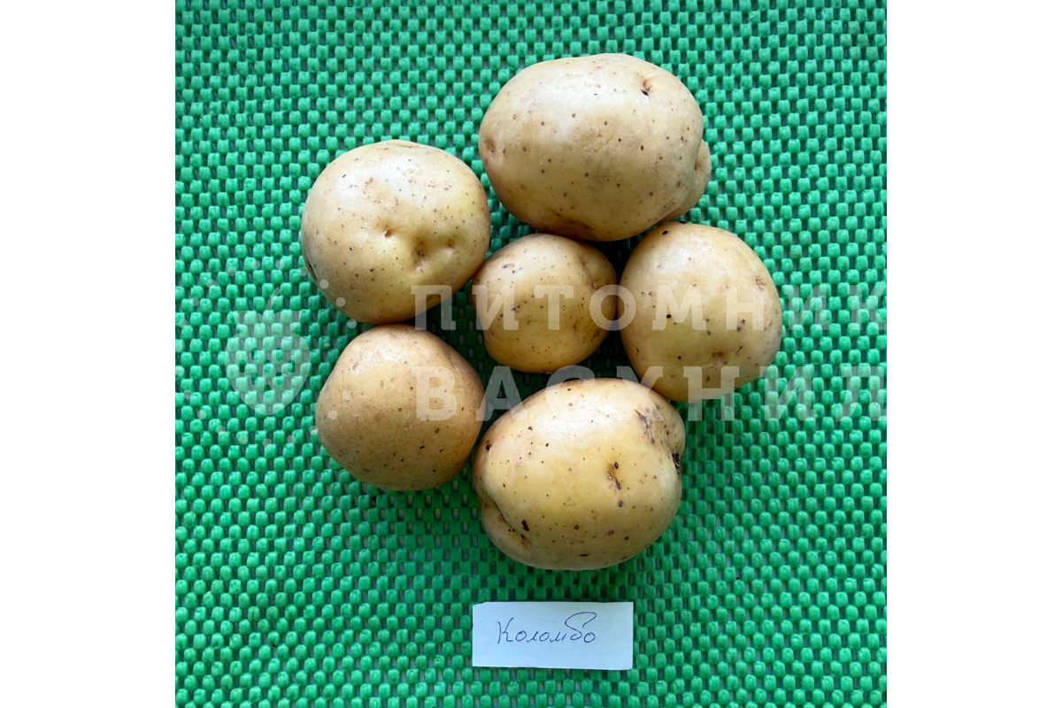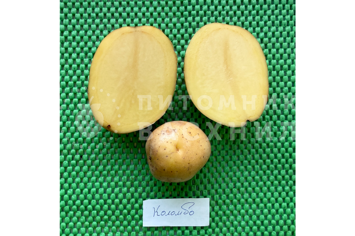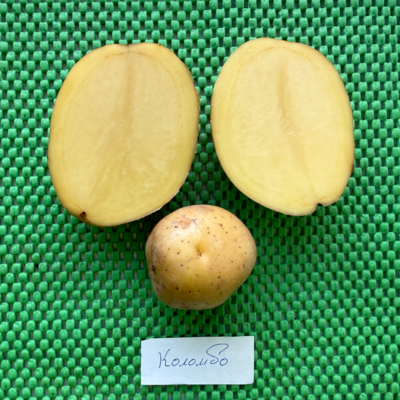 Привлекательный внешний вид: Клубни ровной овально-округлой формы с гладкой светло-жёлтой кожурой и мелкими глазками. Мякоть кремово-жёлтая, плотная и сохраняет форму при варке, жарке или запекании, что делает «Коломбо» универсальным для любых блюд.